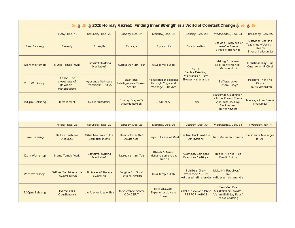 Join the Yoga Farm staff for our special Holiday Retreat: Yoga of Divine Love – Devotional Stories to Open the Heart. This year we draw on devotional stories for our inspiration and learn how to make devotion a practical, living part of our yoga life. We will enjoy the timeless wisdom offered from the Bhagavad Gita, Ramayana, Srimad Bhagavatam, MahaBharata and Upanishads as we learn practical lessons from our spiritual heroes on the path to Divine Love, Truth and Self-Realization.